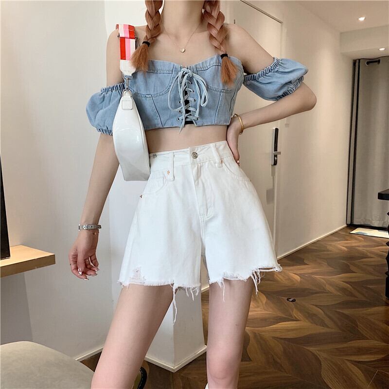 ホワイトショーツ サマー薄手ハイウェストウェストルーズワイドレッグAラインパンツ 夏物 ブルマー ワイドパンツ スーパーモール41380009928