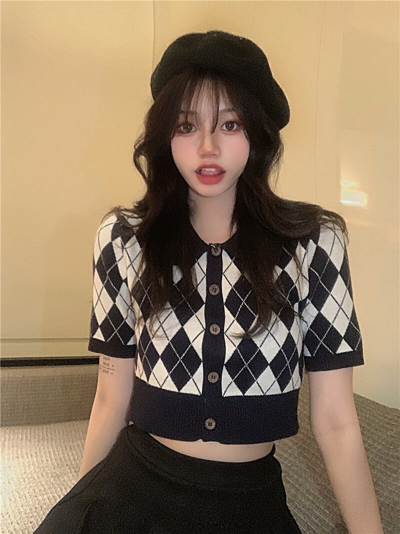 カラーニットTシャツ サマースタンダード レトロ 夏物 スーパーモール74797099069