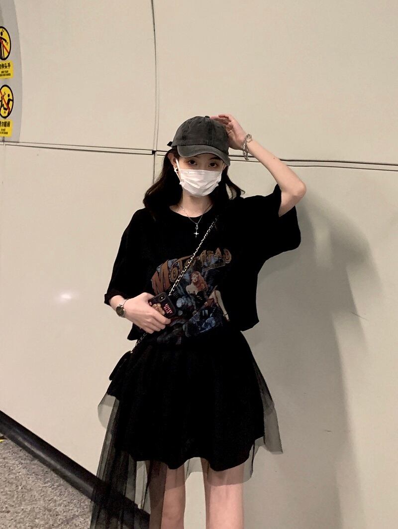 色:黒のTシャツシングルピース,ワンピースのスカート