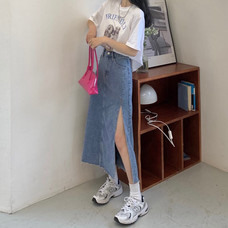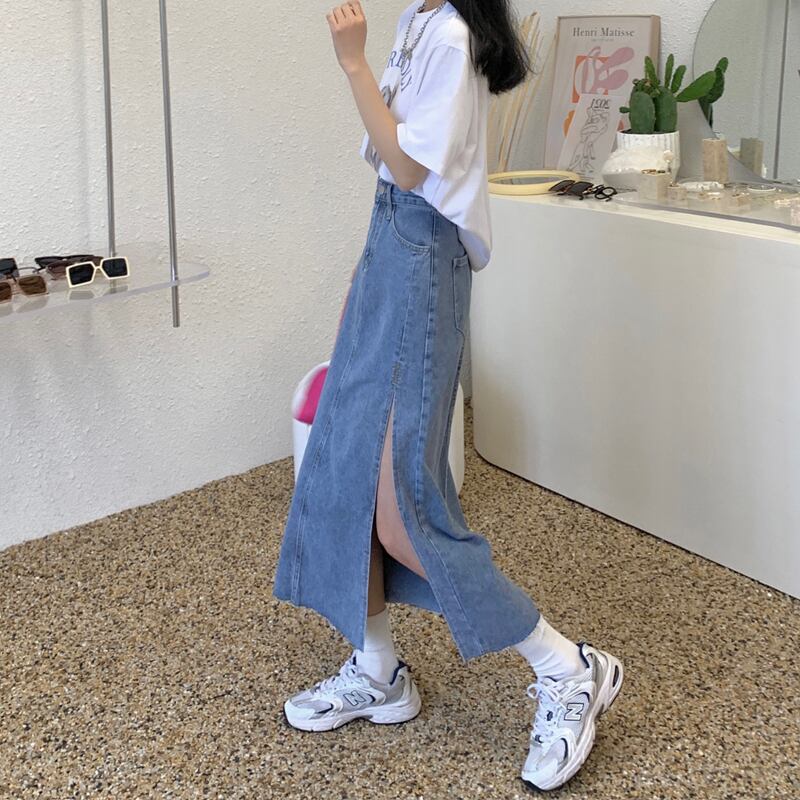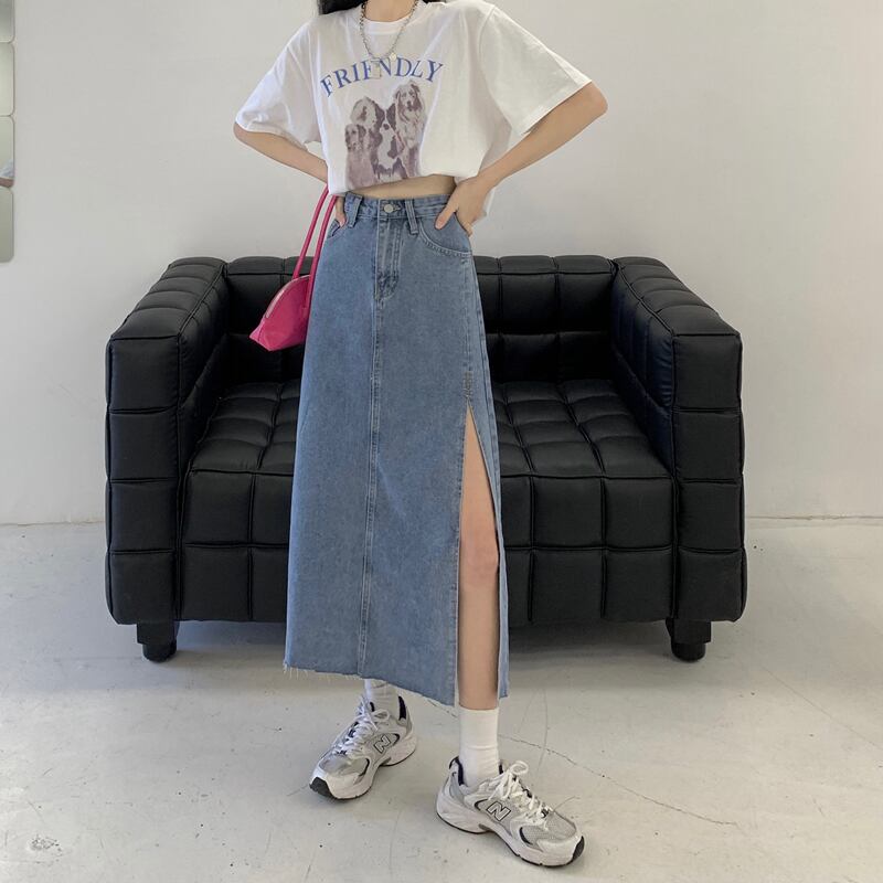 サマーブルースカート ハイウェストAライン 夏物 スーパーモール61615298592