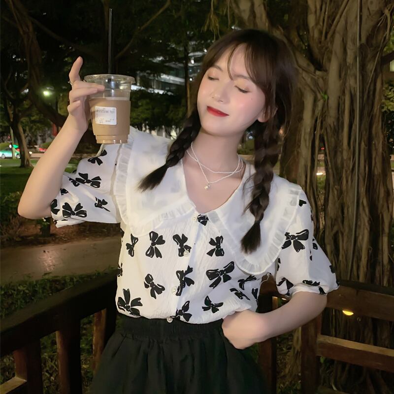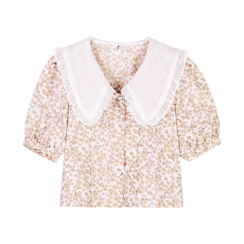 スタイルスリーブフローラルシャツ サマートップス 大人ガーリー スウィート キュート カジュアル 夏物 花柄 スーパーモール23791794624