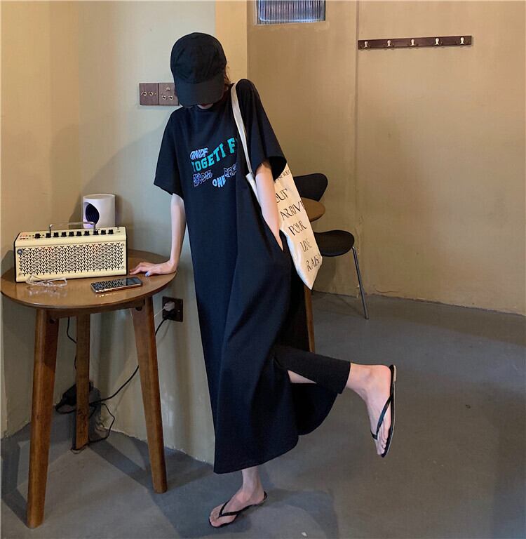ブラックTシャツ ドレス サマーカジュアルロングスカート 大人ガーリー スウィート キュート 夏物 スーパーモール82156293355