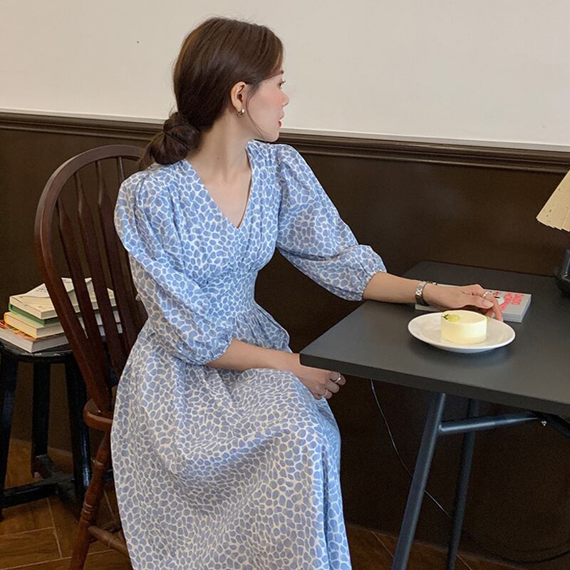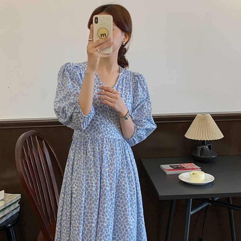 Vネックホルターウェストフローラルドレス サマースリーブロングスカート 夏物 花柄 スーパーモール6448965582