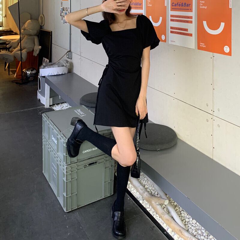 スタイルブラックスリーブドレス サマーウェストスリムショートスカート 夏物 スーパーモール47945020891