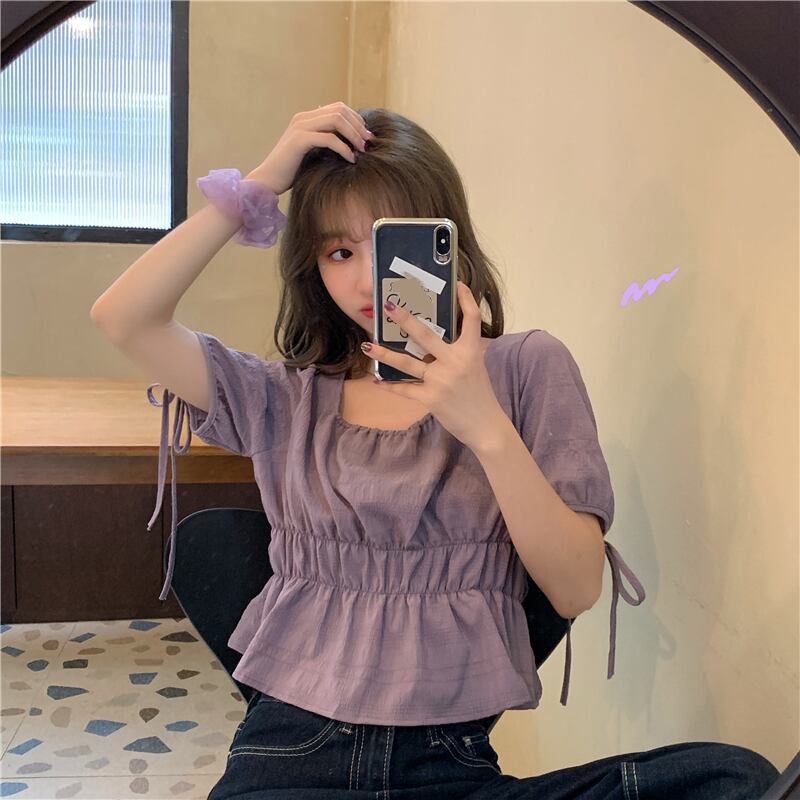 カラースリーブシャツ レディースサマー薄手ウェストショート 夏物 スクウェア スーパーモール52331564287