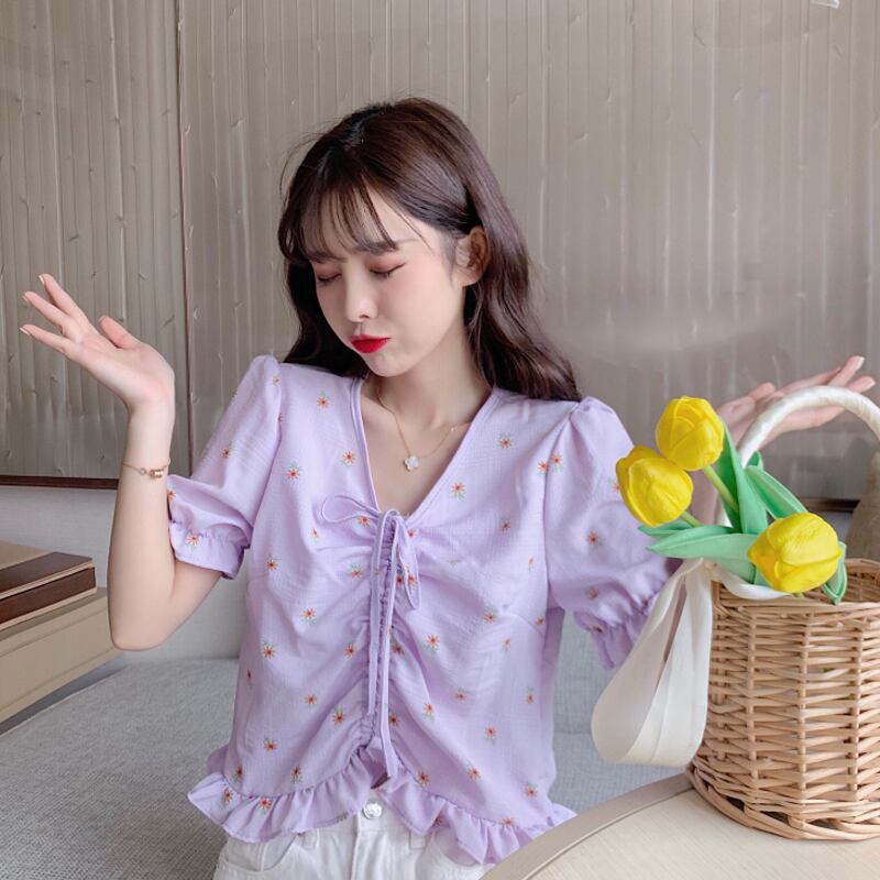 スリーブシャツ サマートップス フローラルVネック 夏物 花柄 スーパーモール44196232311