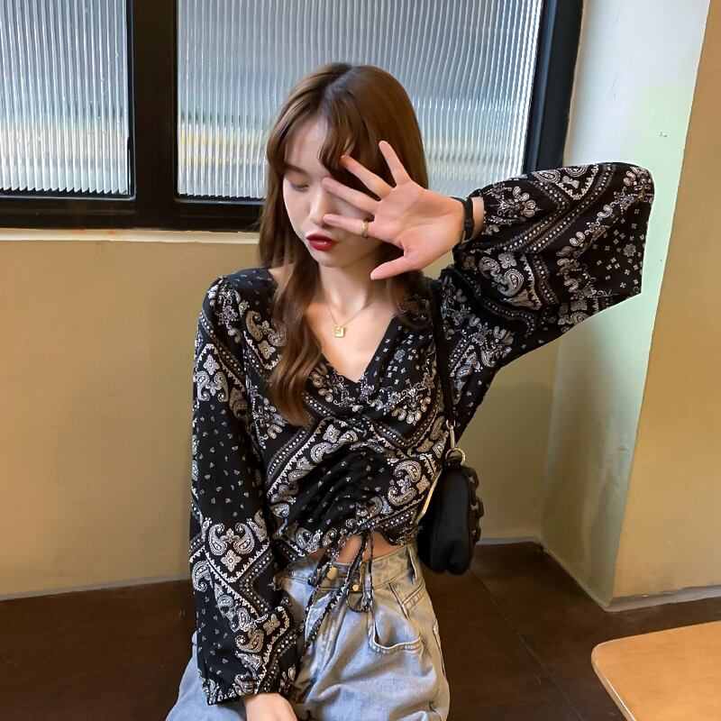 スプリングスタンダードスタイルシャツ ギャザーショート ロング レトロ 春物 スーパーモール68331676384