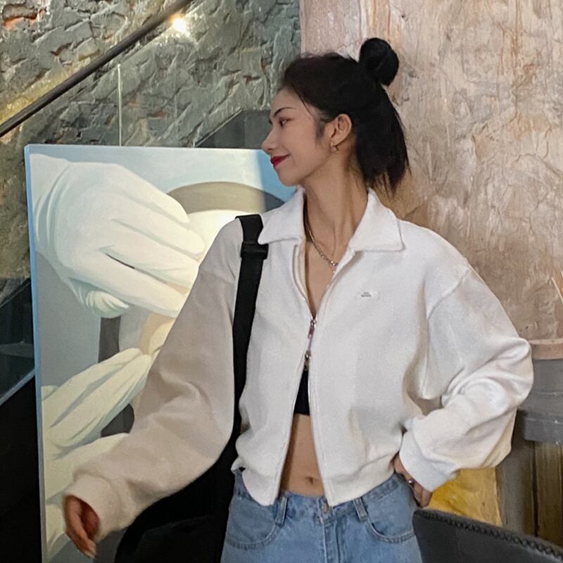 ジッパーセーター コート スプリングオータム薄手カーディガンショートトップス 春物 秋物 スーパーモール69018776367