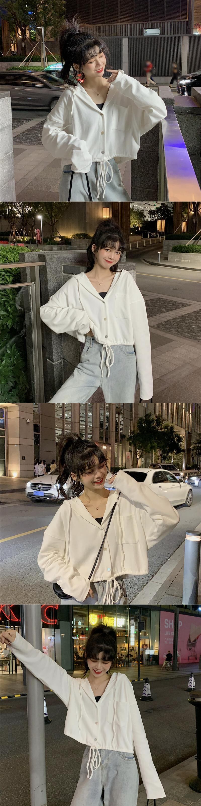 ホワイトフード薄手セーター ジャケット レディースサマーショートトップス 夏物 スーパーモール19366169401