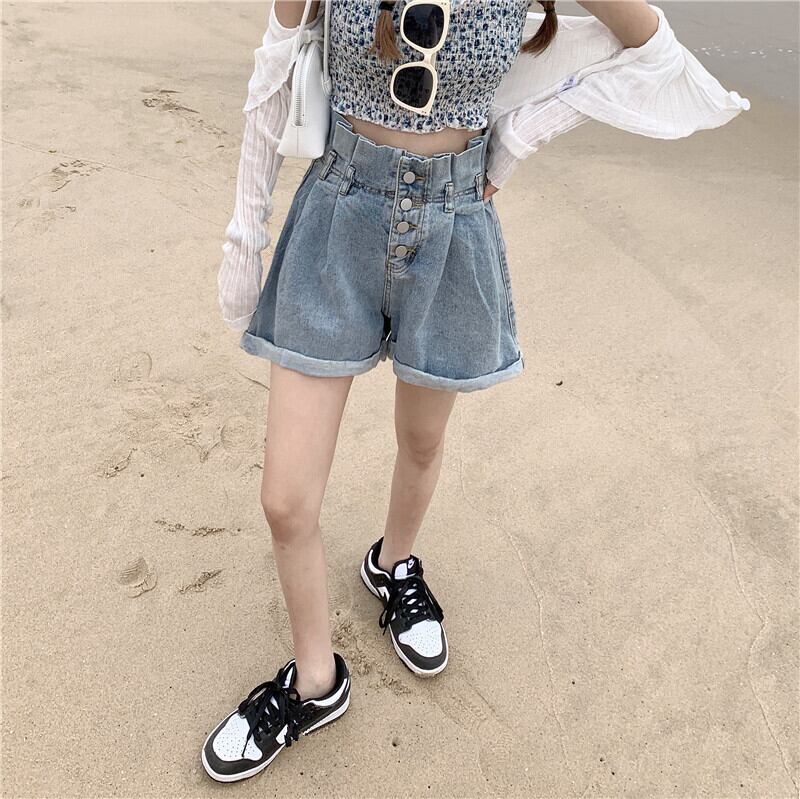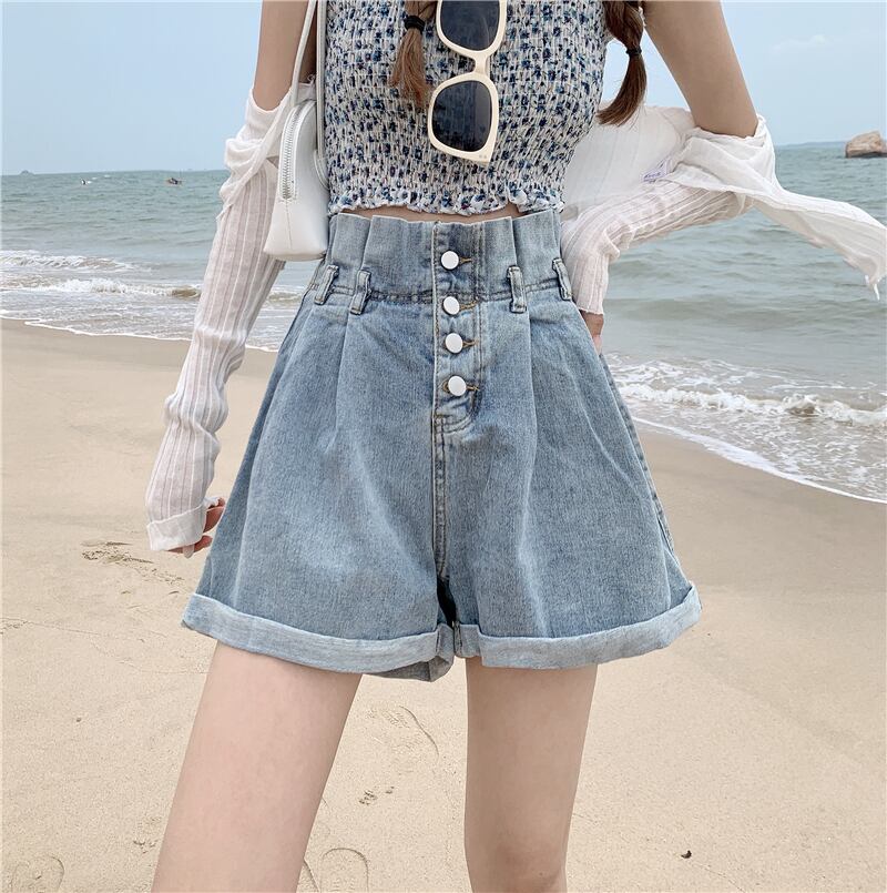 ハイウェストウェストショーツ サマー薄手ルーズAラインパンツ 夏物 ブルマー スーパーモール71848040490