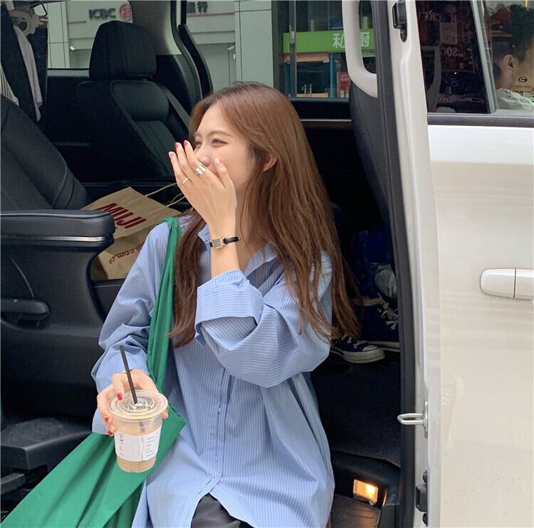 シャツ レディーススプリングオータムスタンダードストライプドレス ロング レトロ 春物 秋物 スーパーモール12023093805