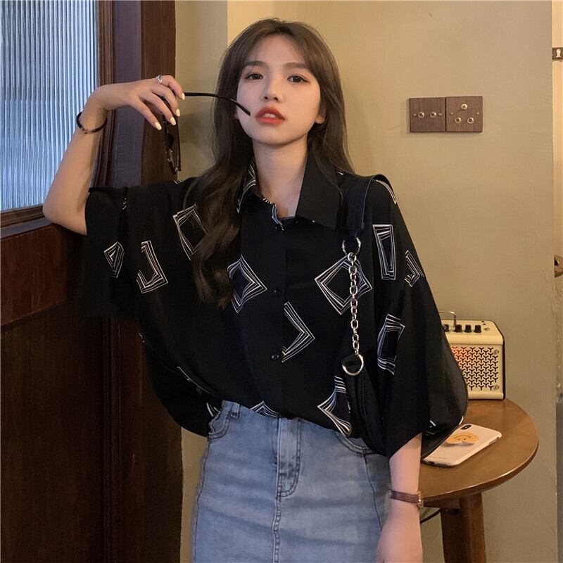 スタンダードスタイルブラックシャツ サマートップス レトロ 夏物 スーパーモール20890816679