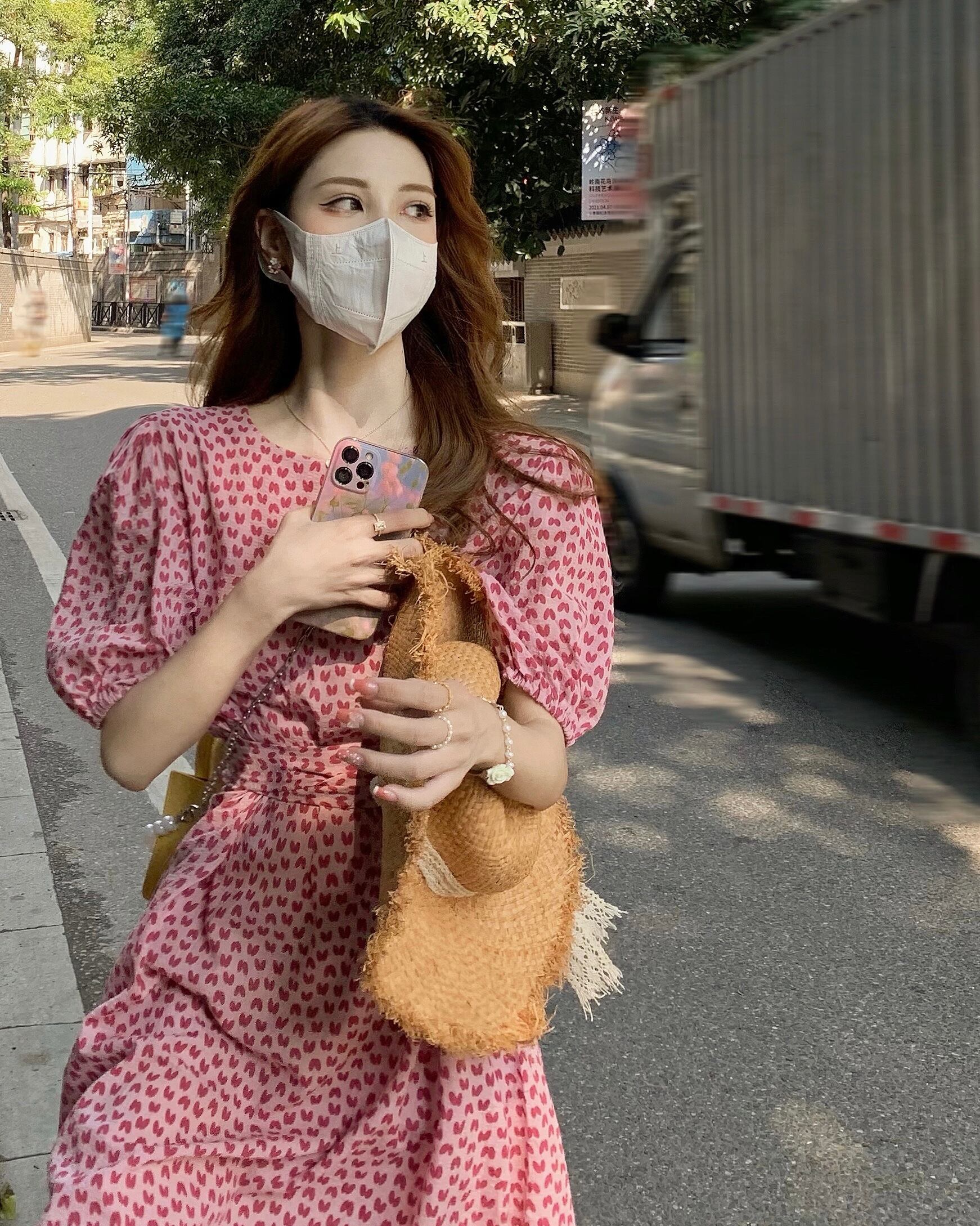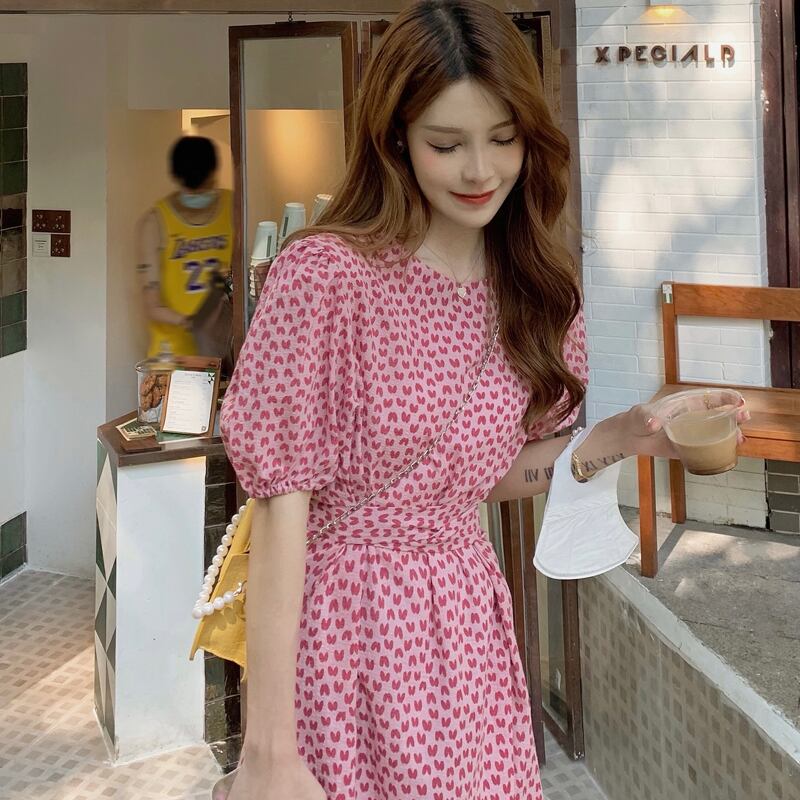 スリーブフローラルドレス サマーウェストロングスカート 夏物 花柄 スーパーモール64467291399