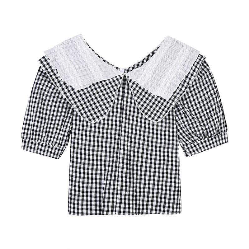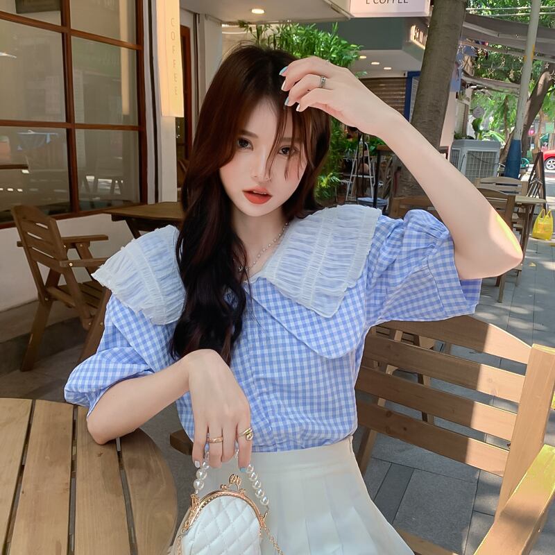 カラースリーブ格子柄シャツ サマートップス 夏物 スーパーモール42933761113