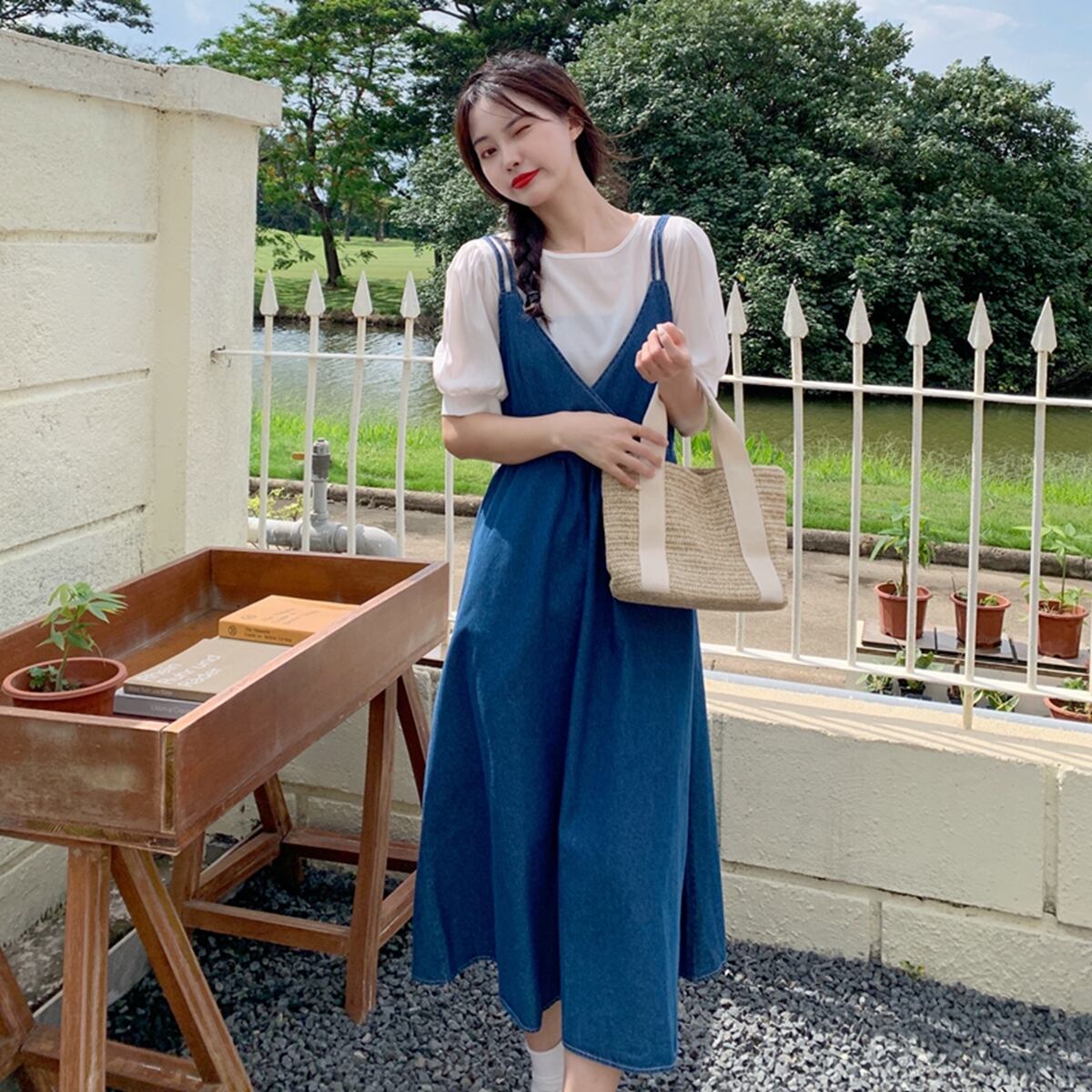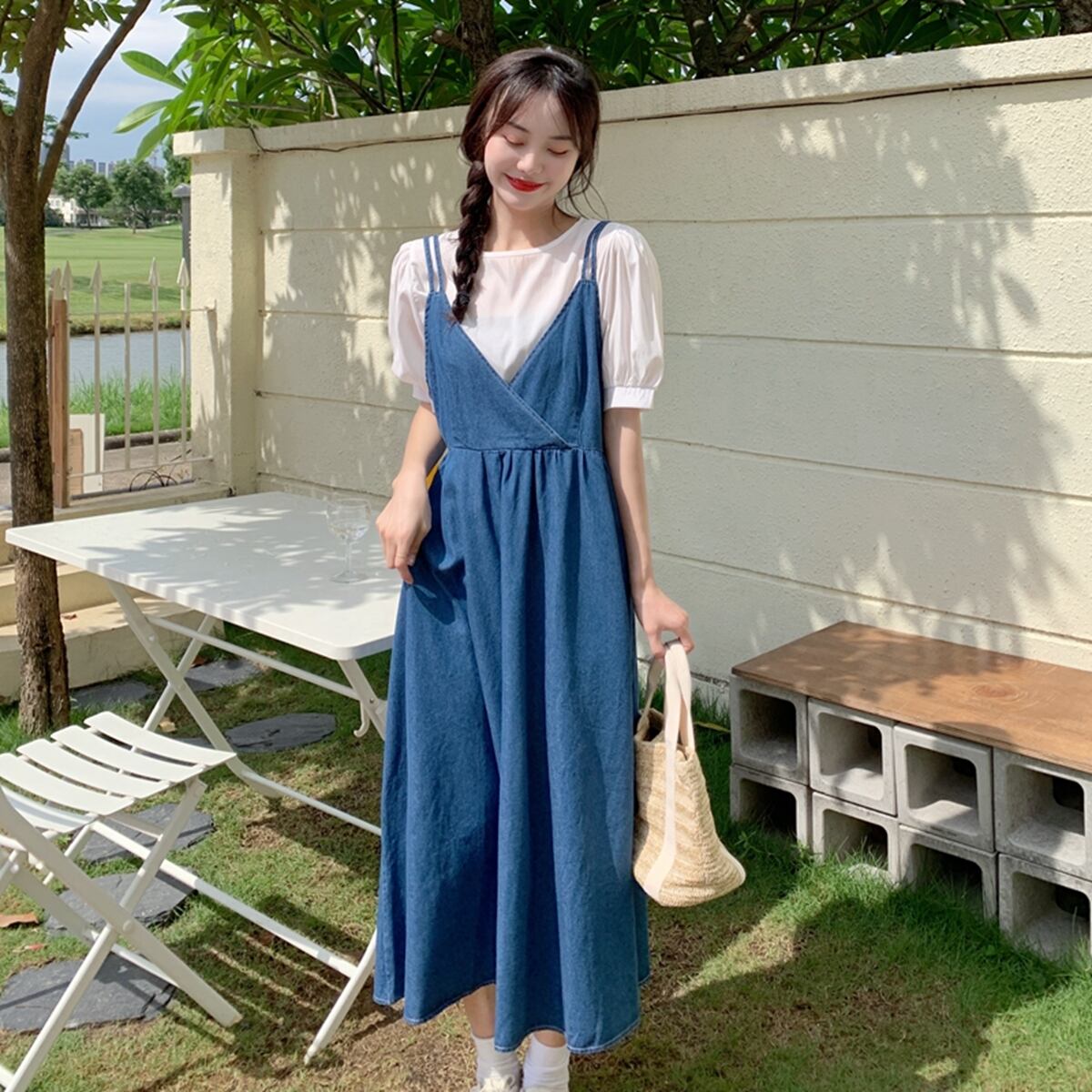 ブルードレス サマースタンダードウェストロングスカート レトロ 夏物 スーパーモール62970230873