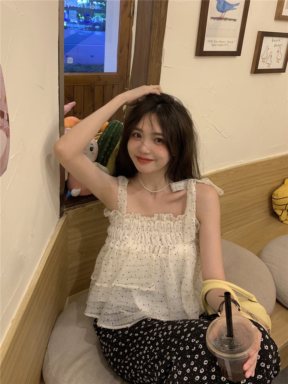 水玉レディースサマートップス ノースリーブ 大人ガーリー スウィート キュート カジュアル 夏物 スーパーモール69748188777