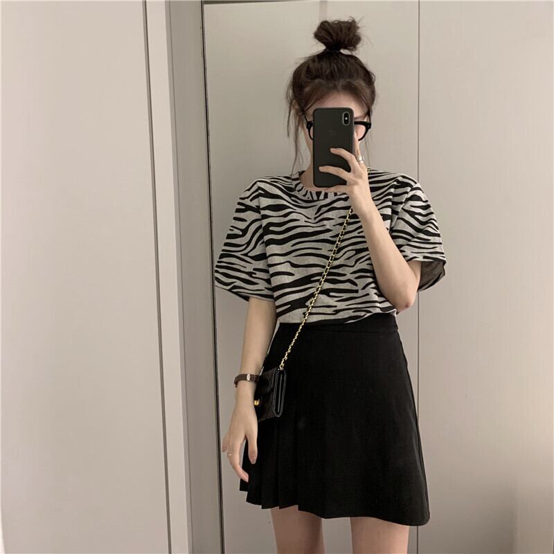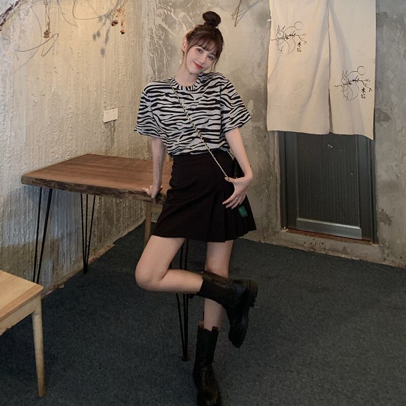 色:シングルゼブラTシャツ,ワンピースのスカート