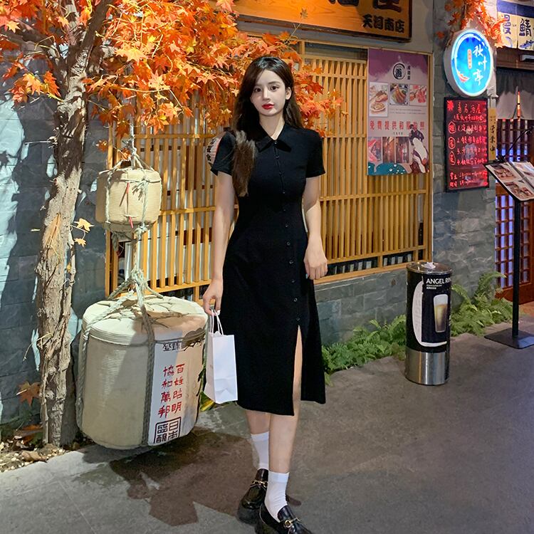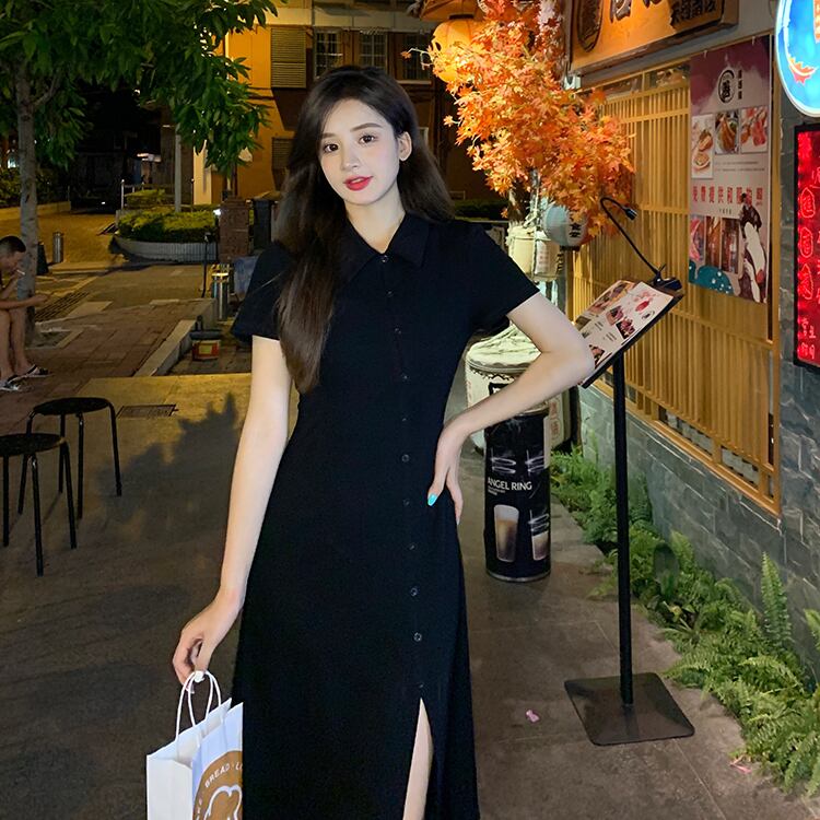ブラックドレス サマースタンダードスリットスリムロングスカート レトロ 夏物 スーパーモール38403663947
