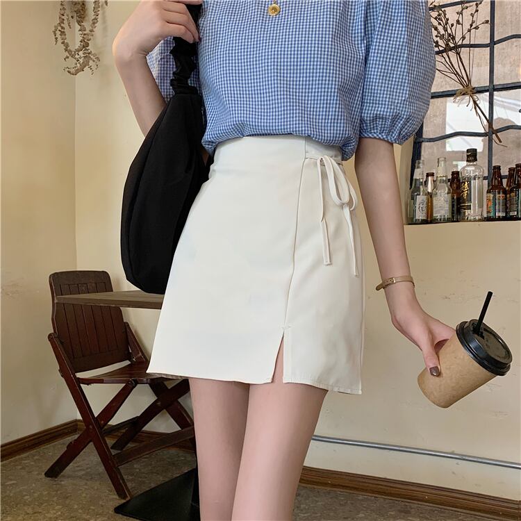 サマーAラインスカート ショート薄手ハイウェストウェストホワイト 夏物 スーパーモール4429677788