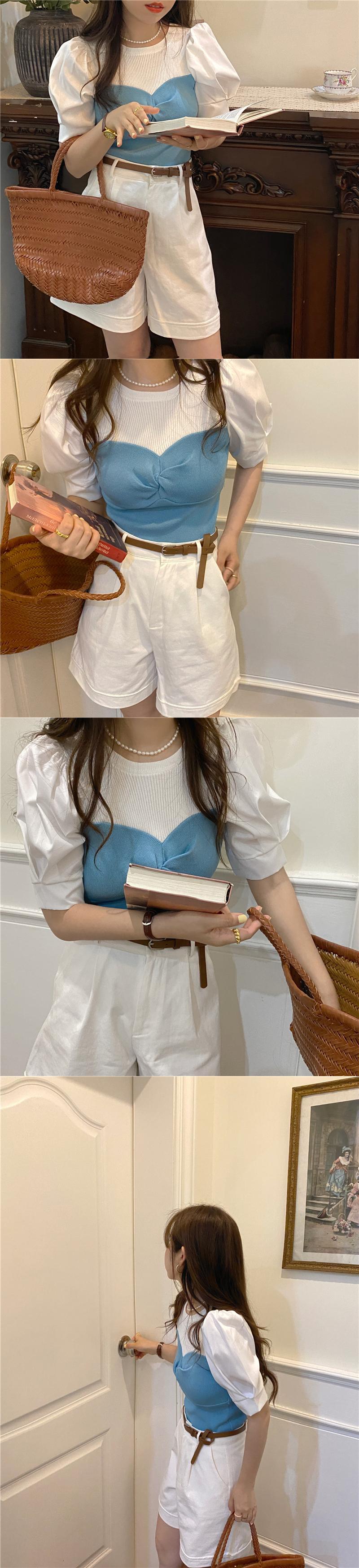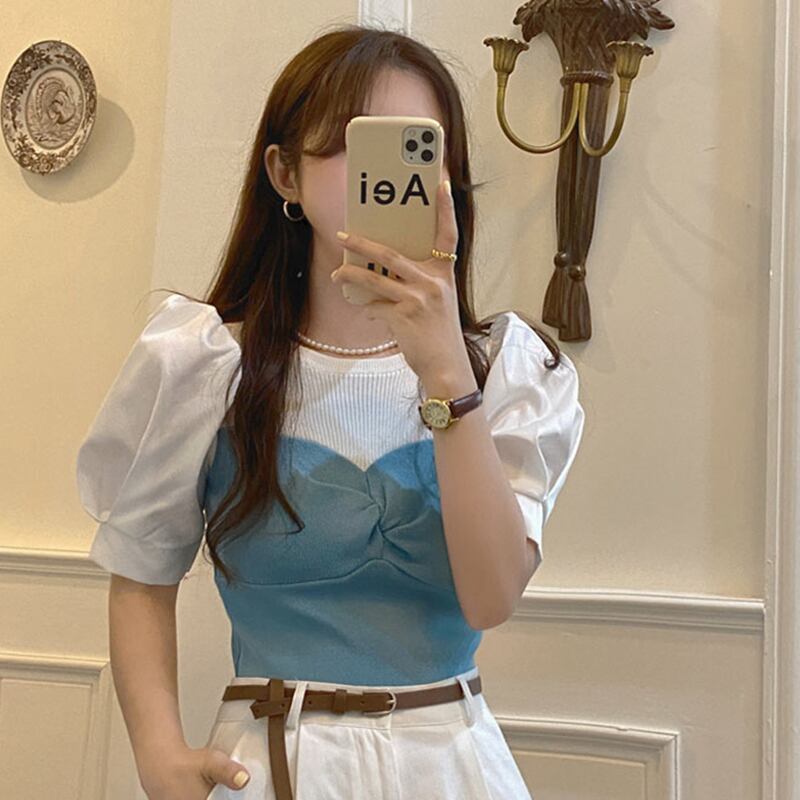 ニットショートスリーブTシャツ レディースサマースリムトップス 夏物 スーパーモール72133380039