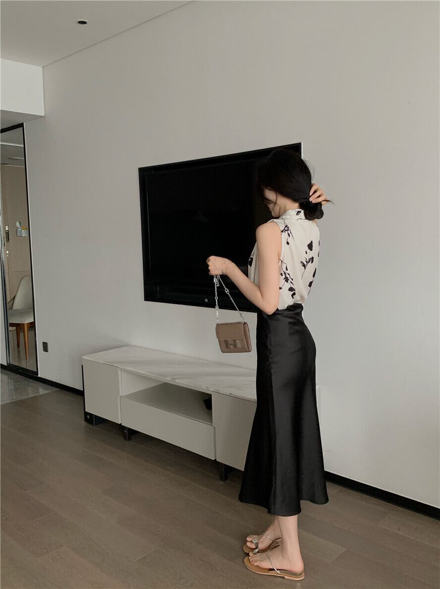 スタンダードVネックフローラルサマーノースリーブトップス レトロ 夏物 花柄 スーパーモール18688799084
