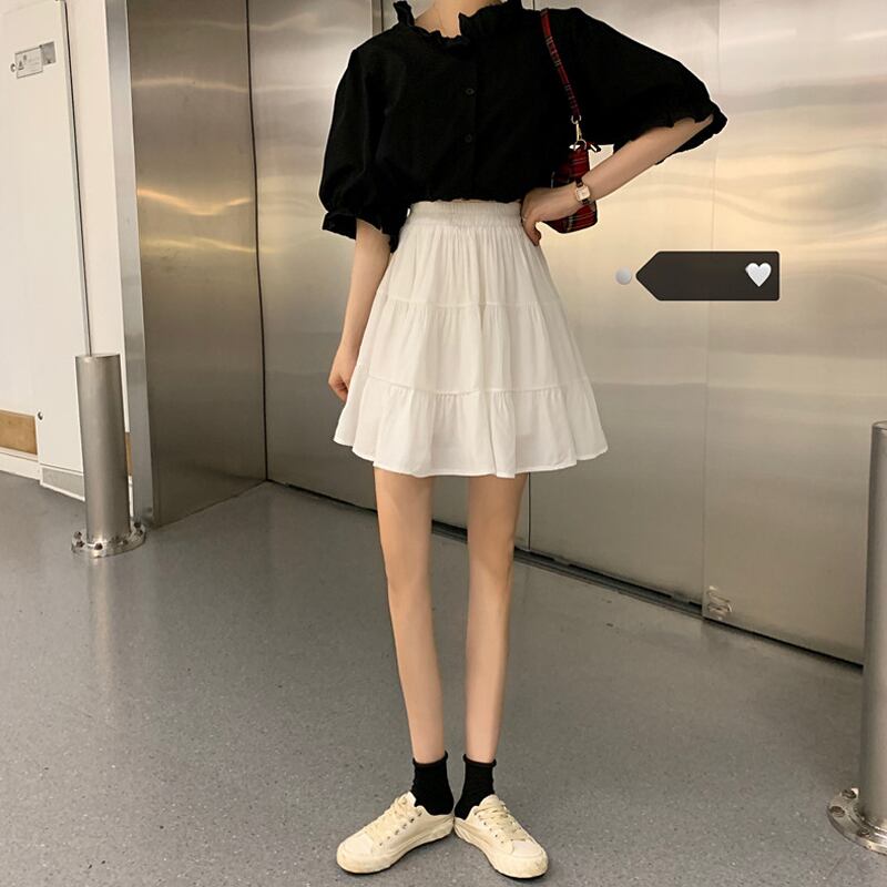 ホワイトスカート サマー薄手ハイウェストウェストAライン 夏物 スーパーモール22067415768
