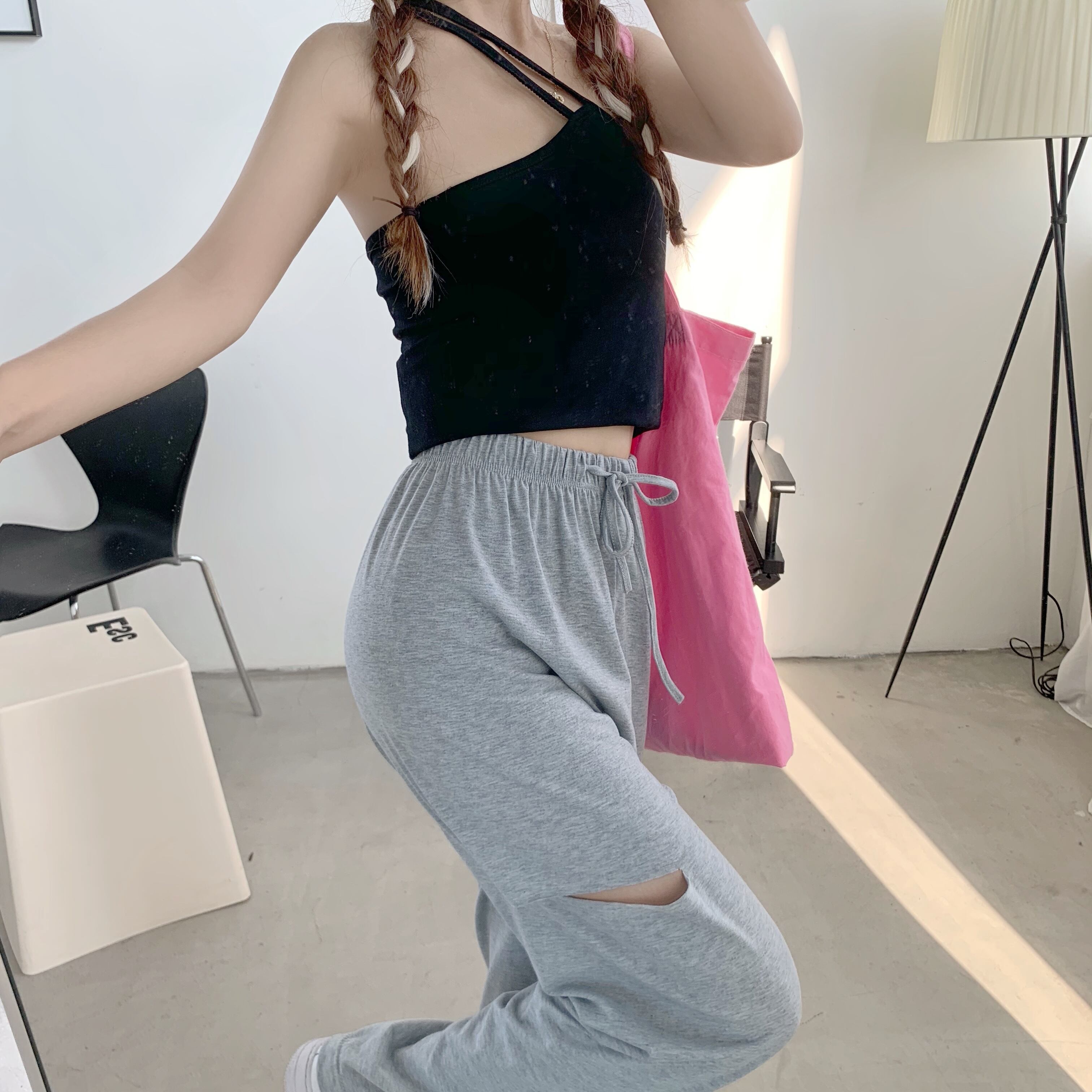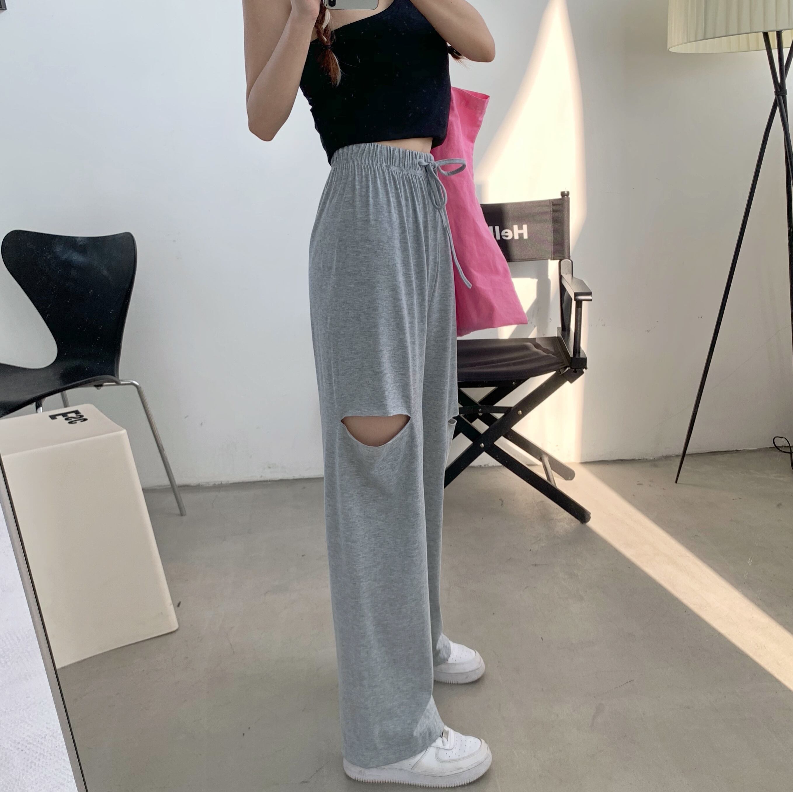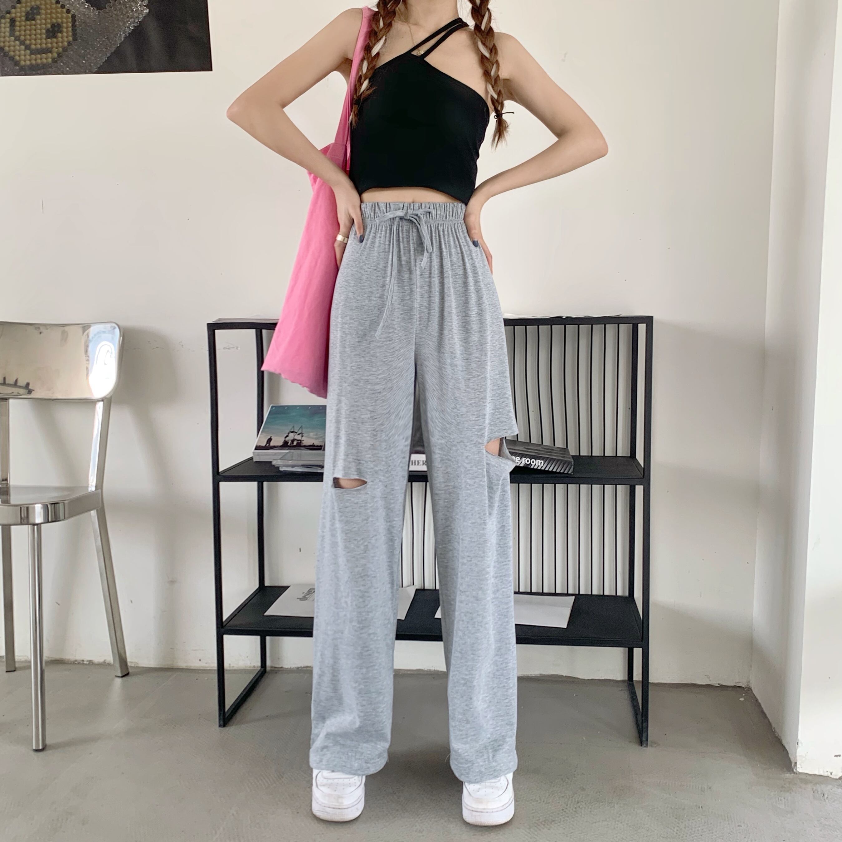 グレーパンツ サマー薄手ハイウェストルーズカジュアル 夏物 スーパーモール1306917027