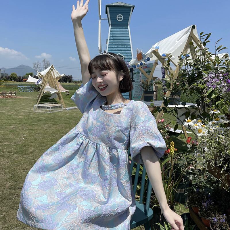 スリーブドレス サマーショートスカート 大人ガーリー スウィート キュート カジュアル ふわふわ 夏物 スーパーモール20860372661