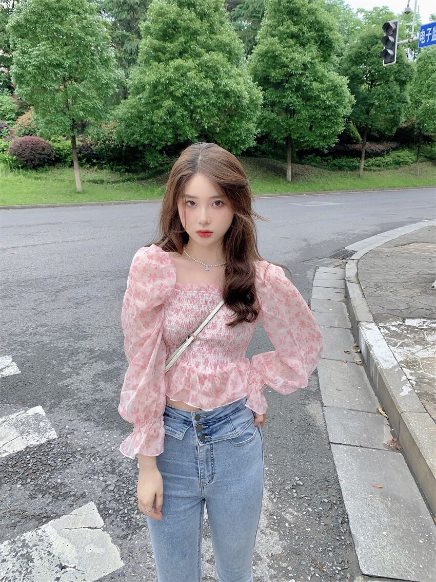 スタイルショートトップス ドレス サマーシフォンフローラルシャツ ロング 夏物 花柄 スーパーモール54386338428