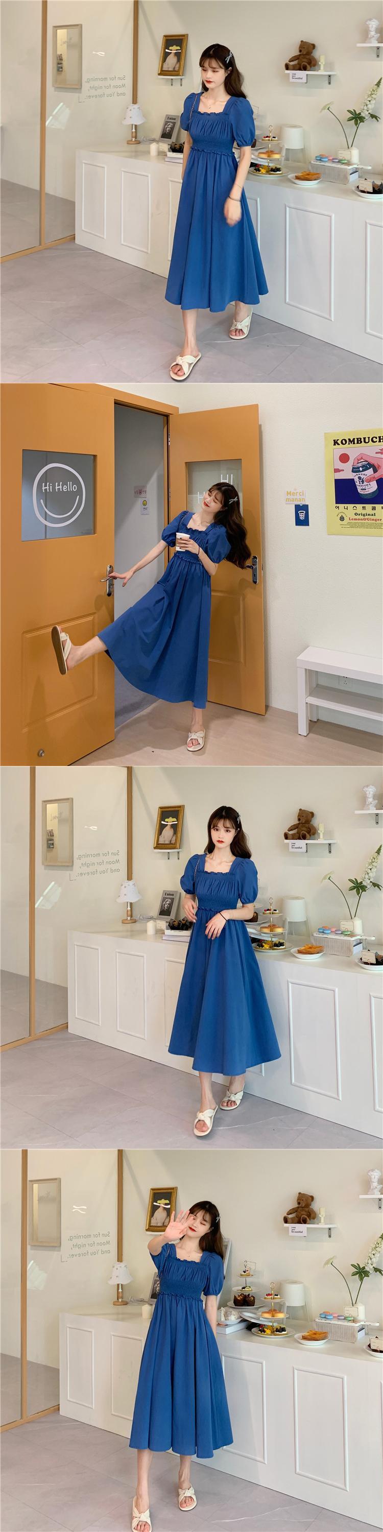 スタンダードスリーブドレス サマースタイルAラインロングスカート レトロ 夏物 スクウェア スーパーモール28441013696