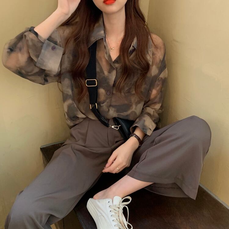 スプリングスタンダードシャツ シフォン ロング レトロ 春物 スーパーモール12922299053