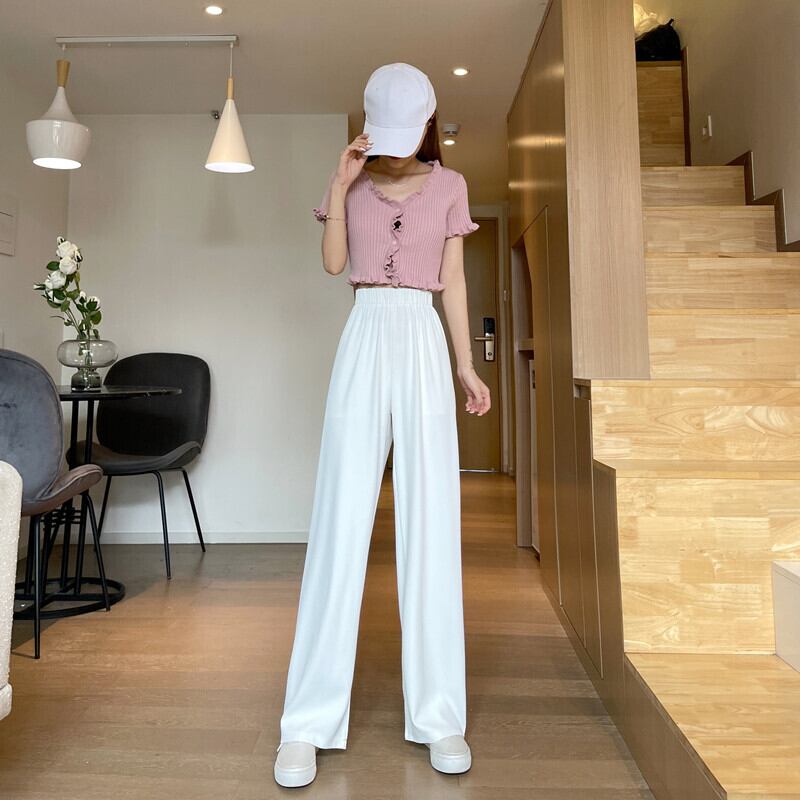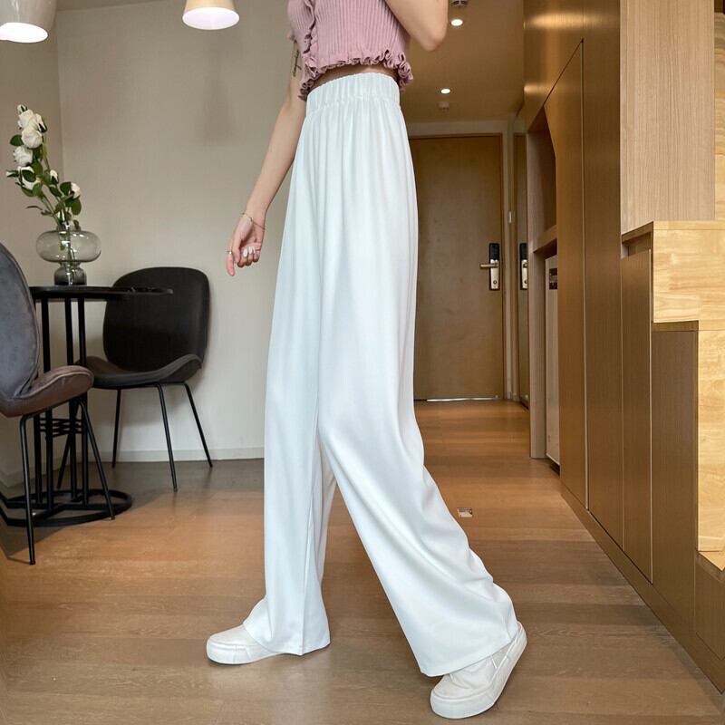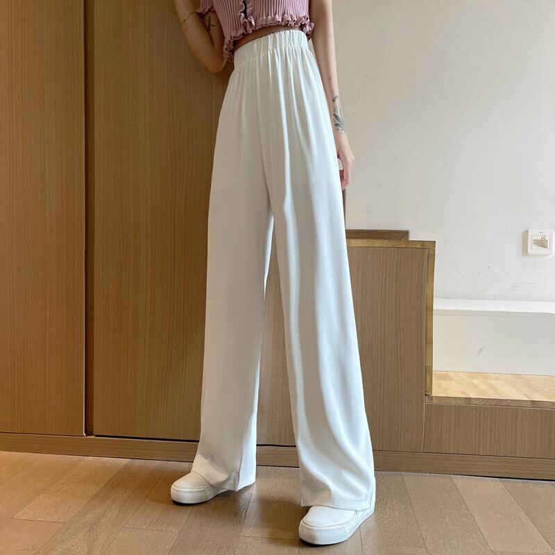 ブラックパンツ サマー薄手ハイウェストルーズカジュアル 夏物 シルク スーパーモール75117244843