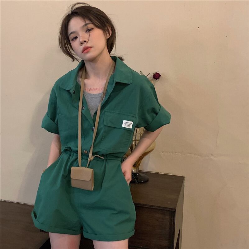 グリーンオーバーオール ショーツ サマー薄手ワンピースジャンプスーツ オールインワン ルーズ 夏物 ブルマー スーパーモール3756809278