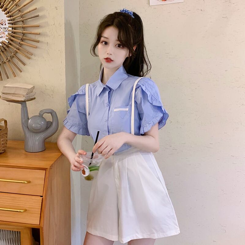 色:ブラックショーツワンピース,白いショーツの単一部分,白いシャツのワンピース,青いシャツワンピース