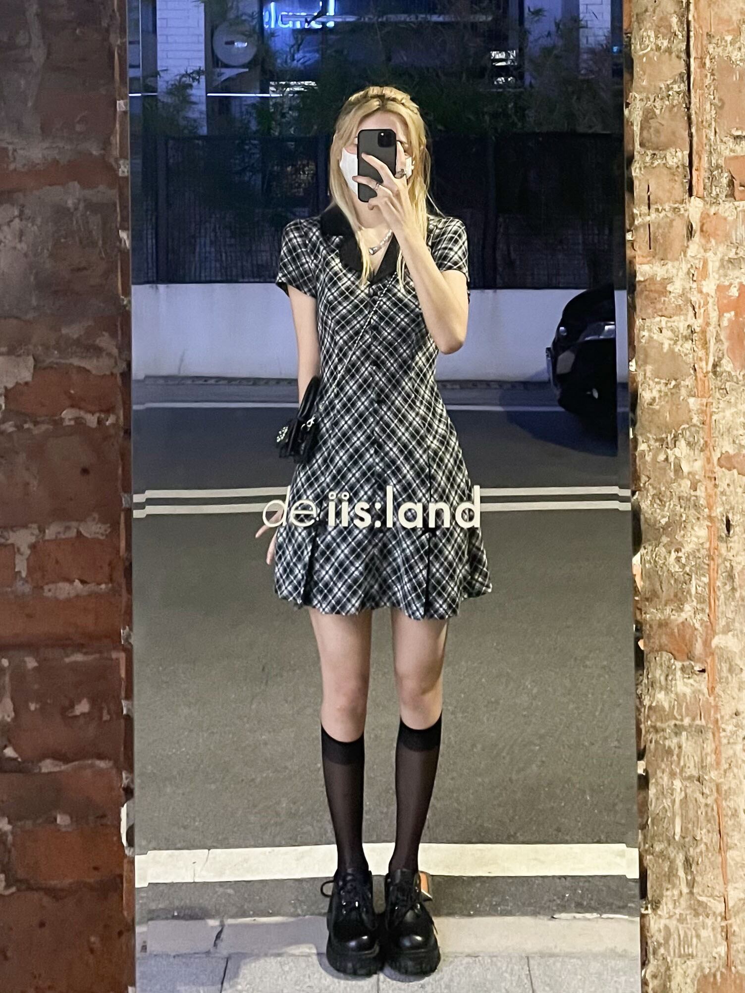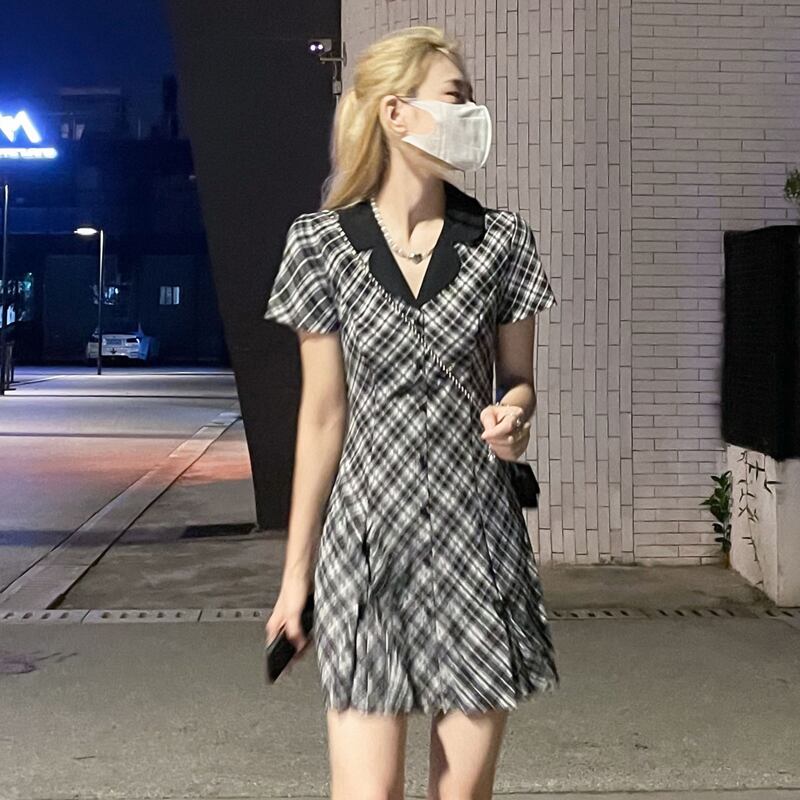 スタンダード格子柄ドレス サマースリムショートスカート レトロ 夏物 スーパーモール83226488092