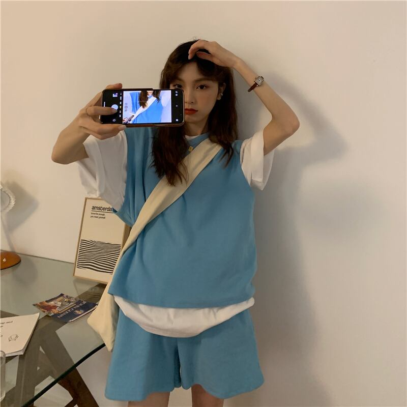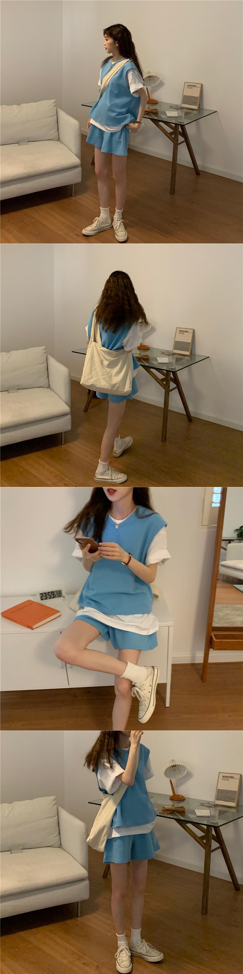 色:Tシャツワンピース,グレーベスト+ショーツ,ブラックベスト+ショーツ,ブルーベスト+ショーツ