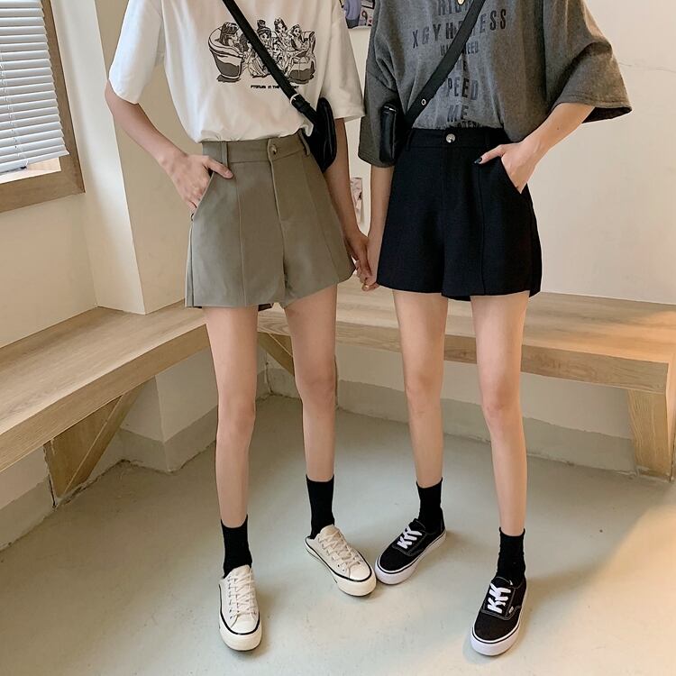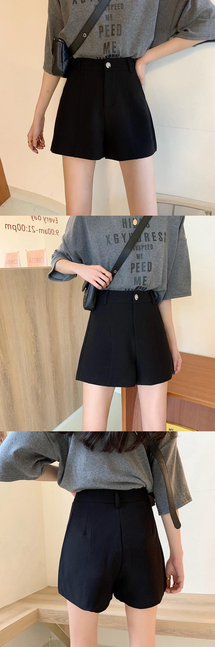 ブラックショーツ サマー薄手ハイウェストウェストルーズワイドレッグパンツ 夏物 ブルマー ワイドパンツ スーパーモール24924566734