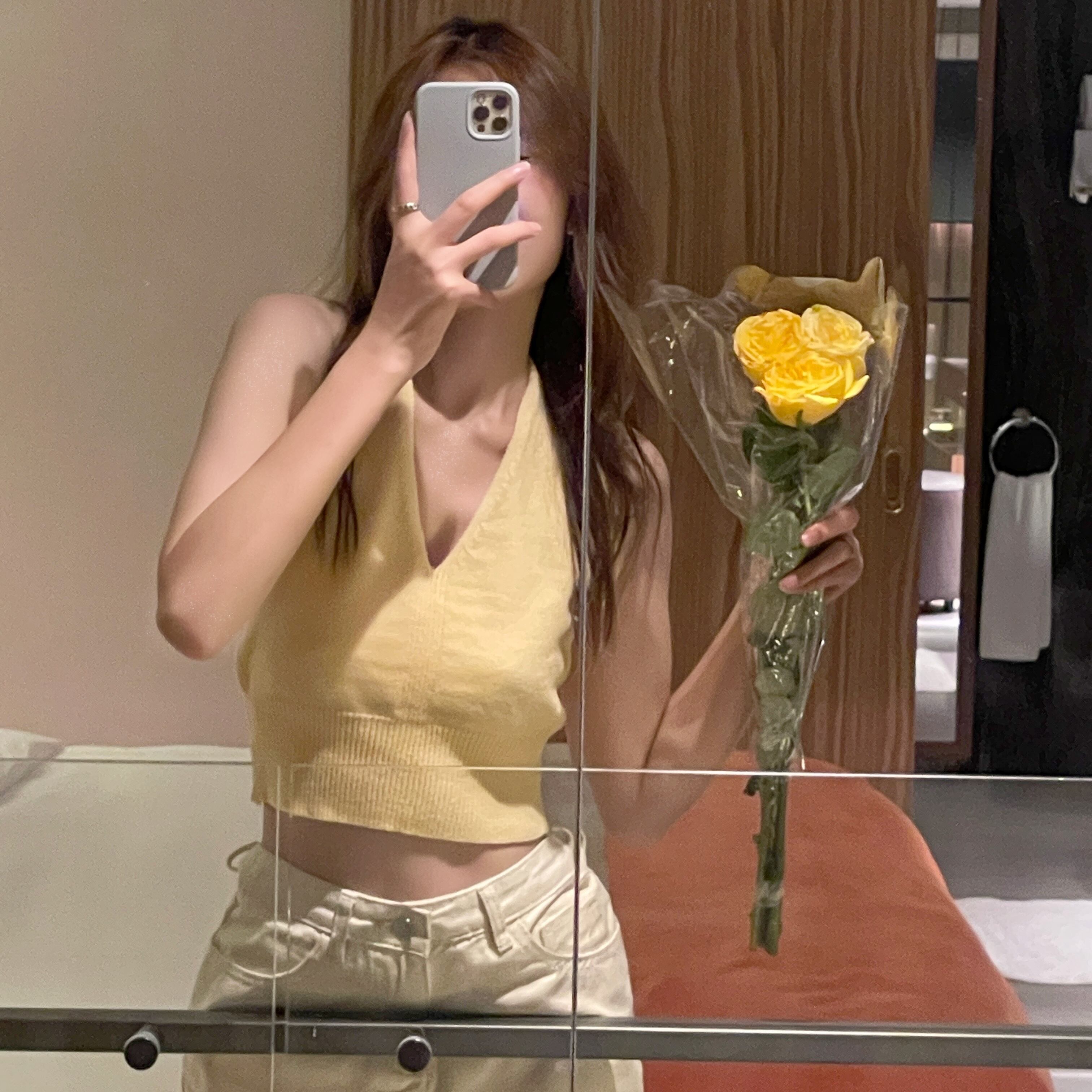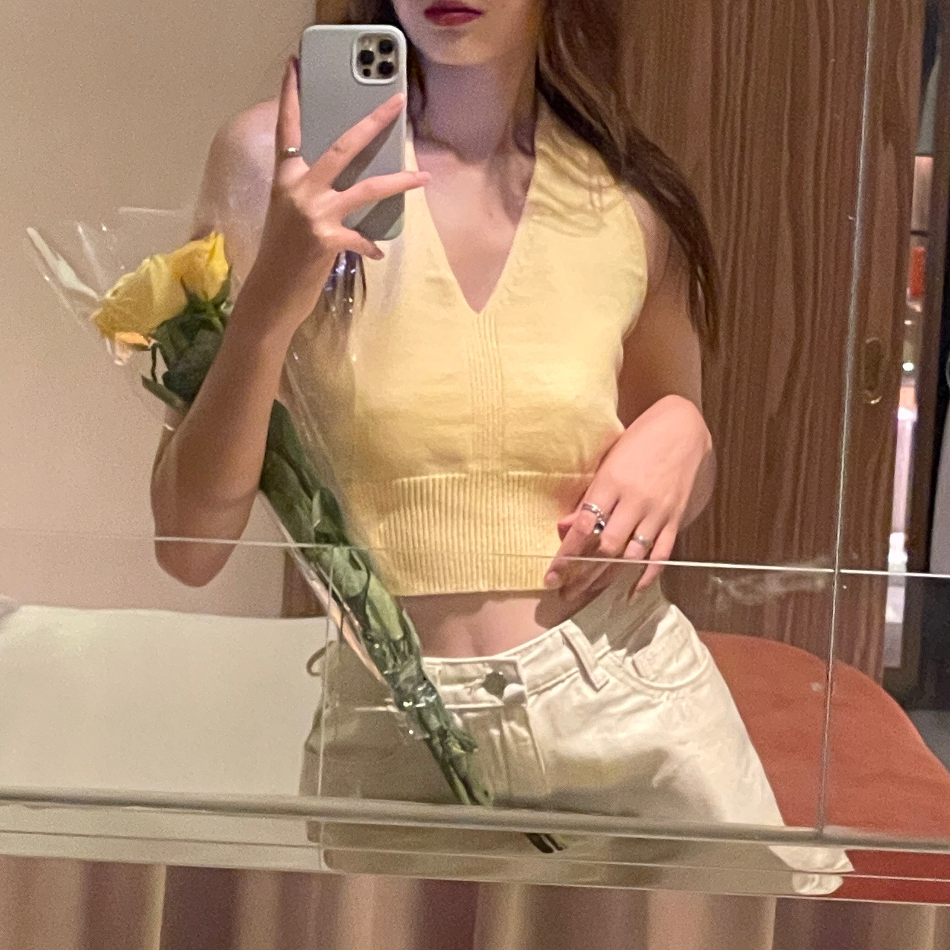 ホワイトVネックホルターニットサマーショートトップス 夏物 スーパーモール58171011973