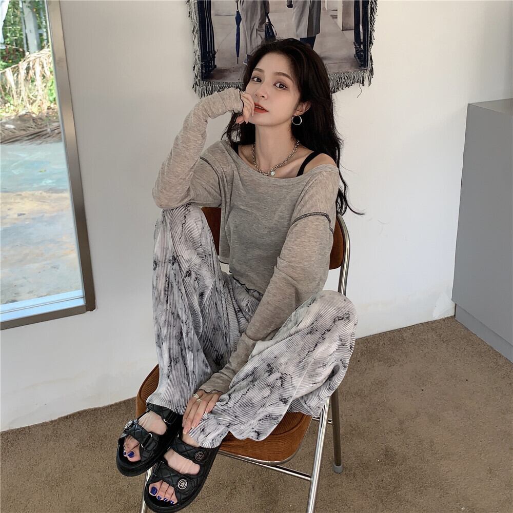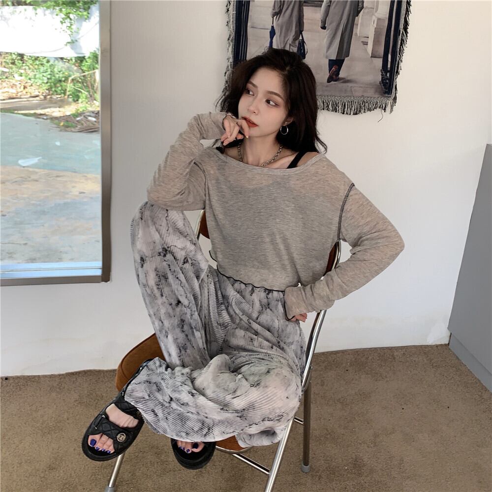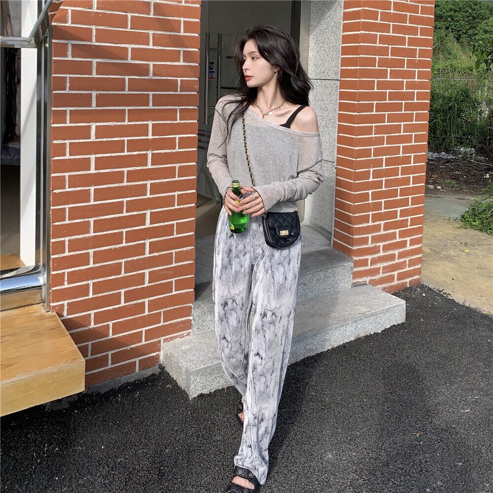 ワイドレッグパンツ サマーレッドTシャツ スタイル ストリート 夏物 ワイドパンツ スーパーモール33513241240