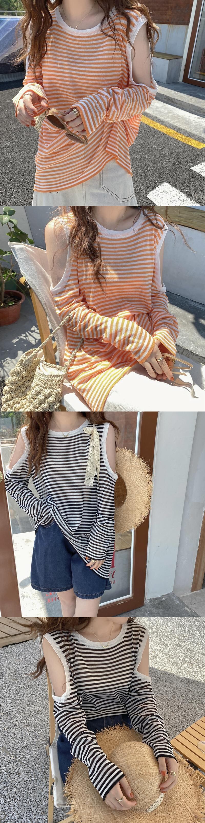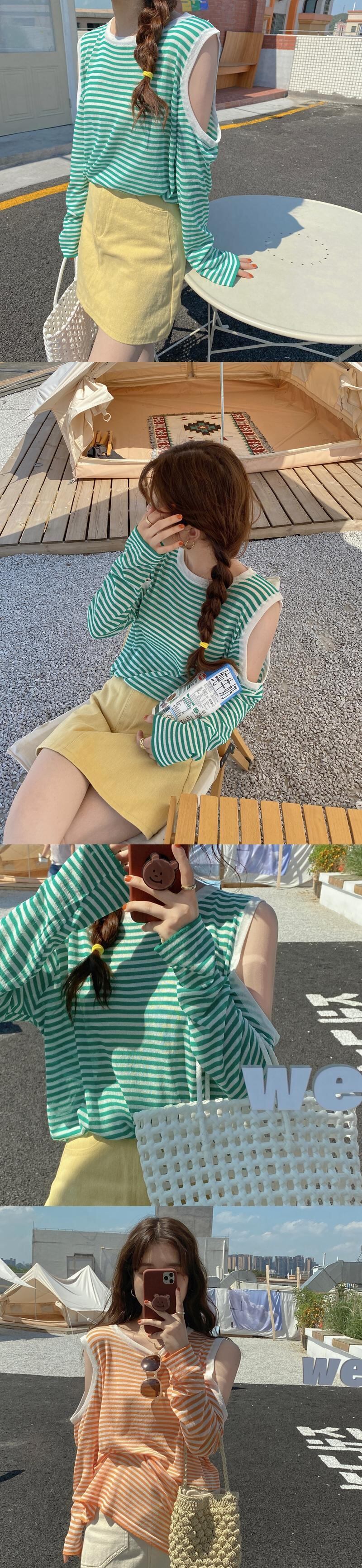 ストライプストラップレスTシャツ サマールーズ薄手 ロング 夏物 スーパーモール59733521972
