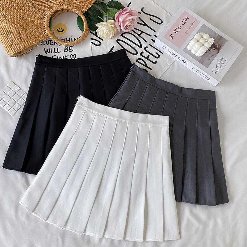 ホワイトプリーツスカート サマースタイル薄手ハイウェストウェストAラインショート 夏物 スーパーモール19239958972
