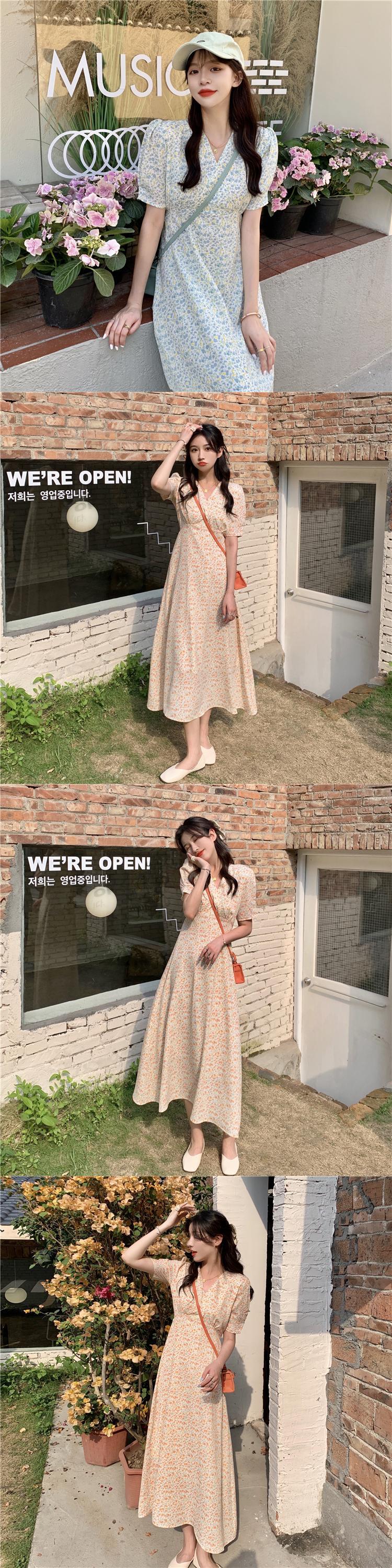 フローラルドレス サマーVネックスリーブロングスカート 夏物 花柄 スーパーモール83031368429