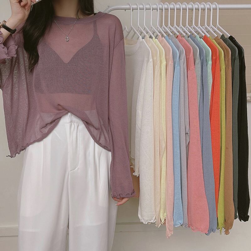 サマー薄手ニットセーター ブラウス トップス ロング 夏物 スーパーモール363060450