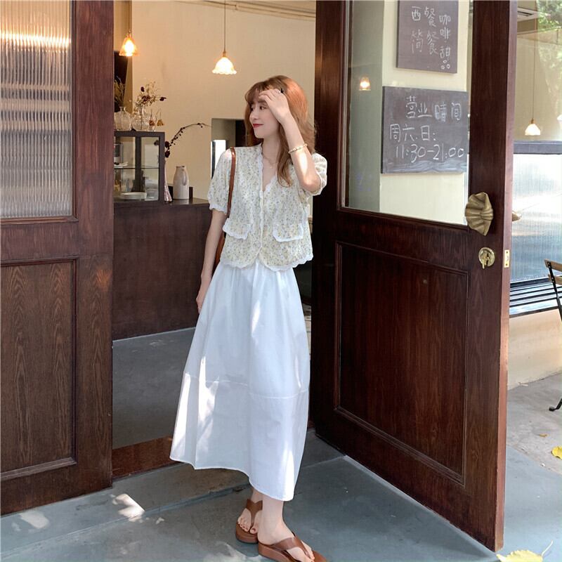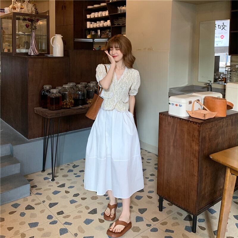 色:黄色のシャツワンピース,ブルートップシングルピース,青いスカートワンピース,白いスカートワンピース