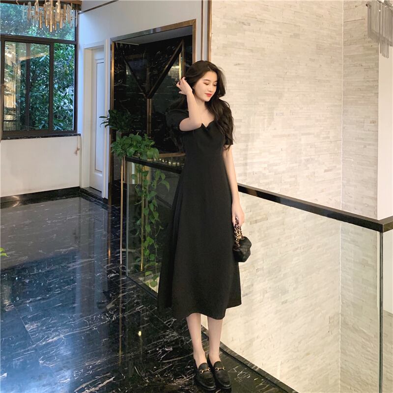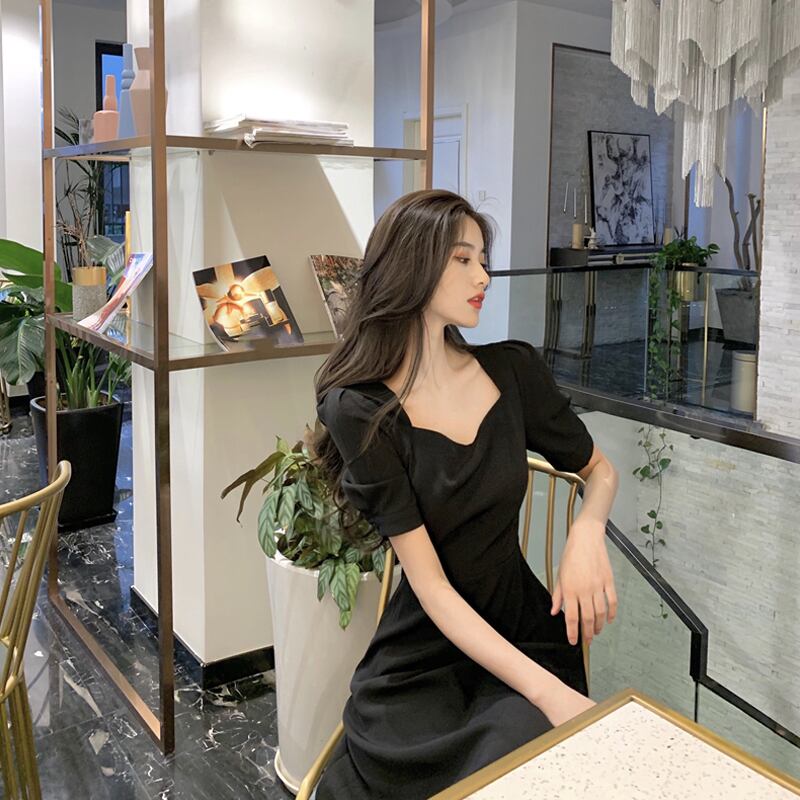 スタイルブラックドレス サマースタンダードウェストスカート レトロ 夏物 スクウェア スーパーモール33227502314