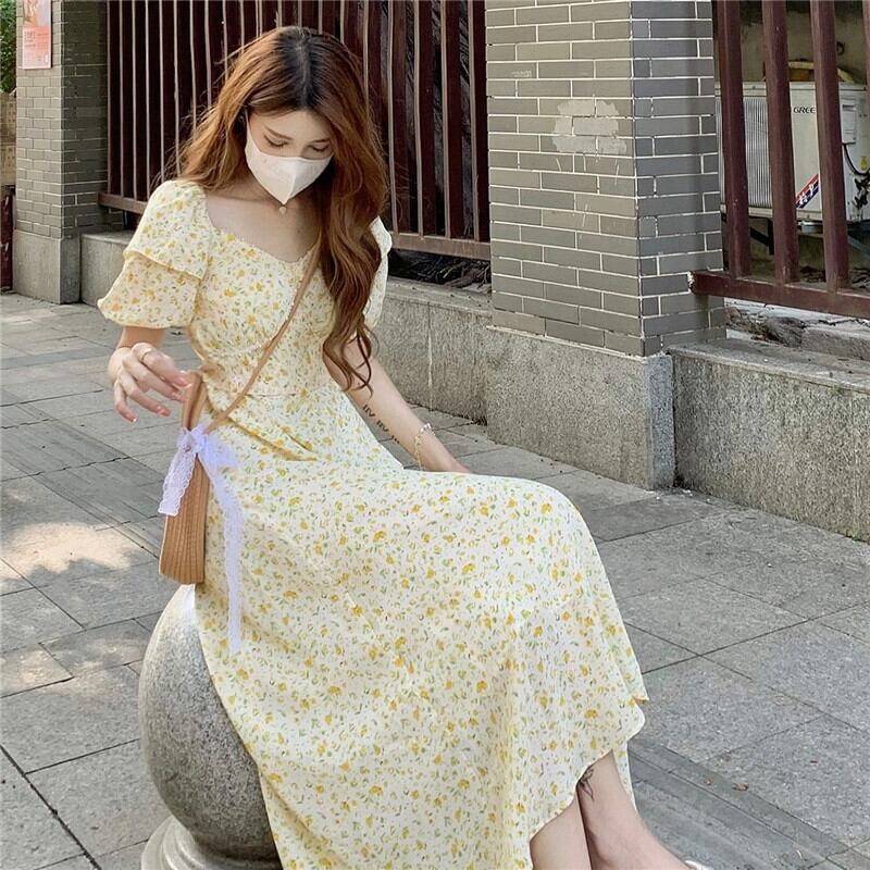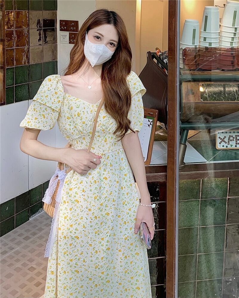 スリーブフローラルドレス サマーウェストロングスカート 夏物 花柄 スーパーモール37283325996