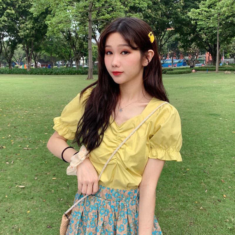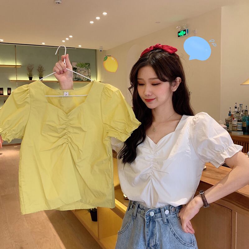 ホワイトVネックスリーブシャツ レディースサマー 大人ガーリー スウィート キュート カジュアル 夏物 スーパーモール64210698231