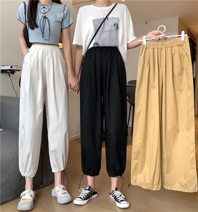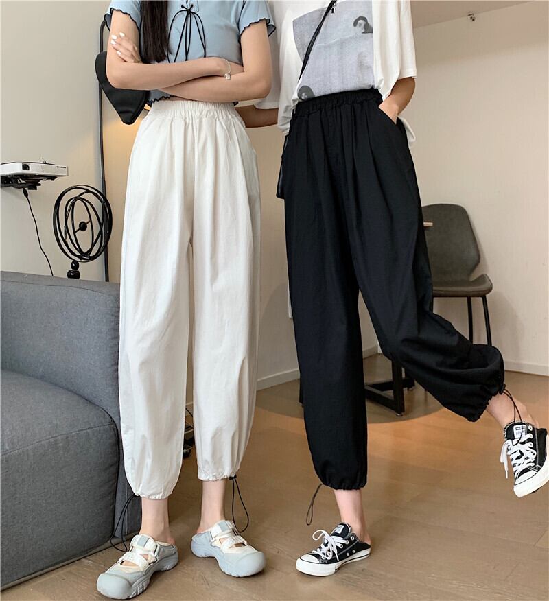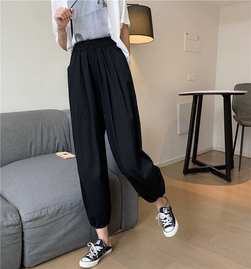 ブラックカジュアルパンツ サマー薄手ハイウェスト 夏物 スーパーモール92300730550