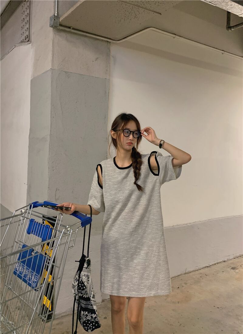 グレーカジュアルTシャツ ドレス サマーショートスカート 夏物 オフショルダー スーパーモール29611610070
