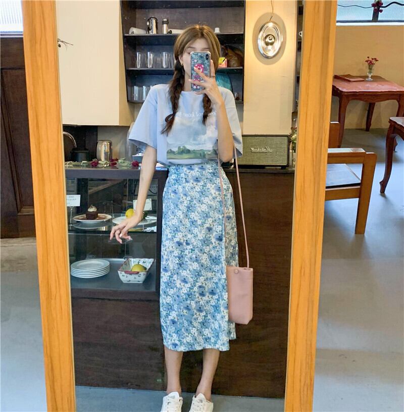 色:ブルーTシングルピース,ホワイトTシングルピース,花柄スカートワンピース
